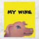 cute painting of a pink pig on a bright yellow background makes this fun wine label with text - my wine.