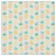 This cute tropical fabric features a fun pineapple pattern against a light yellow background. The pineapples are painted in watercolors like sunny yellow, golden honey, and rich marigold. Each pineapple is topped with fresh green leaves. The yellow background can be changed if you prefer another color.