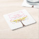 Yellow Pink Floral Bird Bridal Shower Square Paper Coaster