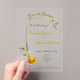 Yellow-Pink Peace Rose w' Pale Green-Gold Wedding Acrylic Invitations