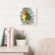 yellow pink rosebud square wall clock