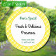 An editable canning or food label with green and black retro script letters on a yellow and white country plaid checked kitchen pattern, with stripes of orange and green. This template has three lines for your custom text, customise it to add or delete lines, change fonts or background colours!