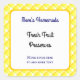 A custom recipe or candle sticker with blue and black retro script and block letters on a yellow and white country plaid checked pattern. This template has three lines for your custom text, edit to add or delete lines, change fonts or background colours!