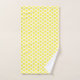 Bath towel set polka dot design. You can customise this yellow coloured bathroom towel set with any text of your choice. Should you require any help with customising then contact us through the link on this page. Yellow polka dot design bathroom towel set