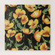 Vintage-style watercolor pattern boasts cheerful yellow poppy flowers against black.