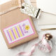 Cute and girly yellow and purple floral notes design with flowers and hearts.