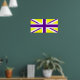 Bright yellow, white and purple cross pattern based on the Union Jack.