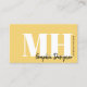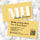 Mustard Yellow Professional Simple Modern Monogram Business Card. You can change it to any business you want—makeup artist, lash specialist, hair stylist, or even something like marketing, consulting, and more! Featuring a mustard yellow background on both sides with black and white fonts in classic and bold typography paired with an elegant script font for the details. The back includes space for a QR code so customers can quickly connect to your website, with social media icons placed above it—you can remove any you don’t want. A trendy and chic look that is still professional and elegant. You can change out all of the colours to make it the way you want it. The side name on the front should work with most initials, but if not, you may want to play around with the spacing in the full editor.