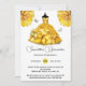 Yellow Quinceañera ballgown peony floral flowers Invitation