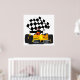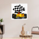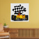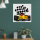 Yellow Race Car with Checkered Flag Poster