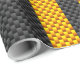 A golden yellow racing stripes accent in carbon fibre style design decor. The carbon fibre print look suits automotive, modern, and industrial tastes and the vibrant vertical lines make for a dynamic design.