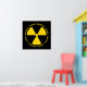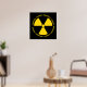 Black poster with yellow radiation symbol surrounded by "Danger - Radiation" in repeating yellow text.