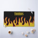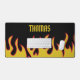 Add some fire to your office decor with this desk mat. It features illustrations of classic flames in yellow and red against a black background for a tough, manly look. Your name or other message is in golden yellow lettering.