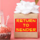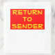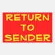 Yellow Return to Sender on Red Rectangular Sticker