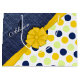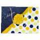 Elegant faux jeans fabric and dots in blue and yellow pattern with a lovely ribbon in a sunny yellow colour and a monogram.
