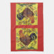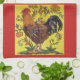 Yellow Rooster Chicken Red Folk Art Kitchen Towel