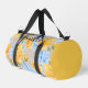 Beautiful floral duffel bag that you can personalise with your name or other text features yellow roses and blue hydrangeas.