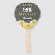 Yellow Rose Flower Floral 80th Birthday Party Hand Fan. Beautiful yellow roses. The background is chalkboard grey. The text is in white and yellow colours and is easily customisable - personalise it with your name, age and your message on the backside. Perfect for a woman who is celebrating her eightieth birthday.
