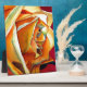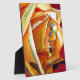 with original art design from watercolour painting of golden, yellow rose flower by artist Sacha Grossel. This stunning, close focus, macro floral design incorporates colours of golden yellow, orange and brown for the large vivid petals against a Crimson red background. The close focus shows the abstraction of the botanical design. The original painting of this yellow flower was chosen for publication in Artist Palette magazine.