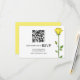 Combining beauty and practicality, this wedding RSVP card presents a lovely yellow rose with long, slender stem and green leaves gracefully arranged on the right side. The design is both elegant and functional, as it includes a QR code that allows guests to easily RSVP online. A vibrant yellow backing completes the look, adding to the card's overall aesthetic appeal.
