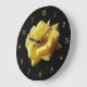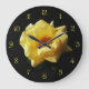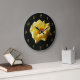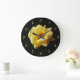 Yellow Rose On Black Yellow Script Numbers wcm Large Clock