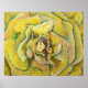 Painting of a vibrant yellow rose in close-up as petals swirl outward. Cool blues, purples, and greens provide vibrant contrast to the shadows and accentuate the motion of the yellow swirl. Personalise the yellow rose poster art print pendant with your own text and images using the "Customise It"options to make special yellow rose gifts!