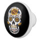 Yellow Rose Sugar Skull on Black Ceramic Knob
