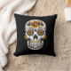 Yellow Rose Sugar Skull on Black Cushion