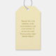 The quality and weight of the paper used was excellent. I love the feminine floral design. I gave received so many compliments on the unique cut of the tag. I also use these tags as a business card. This is my 3rd time ordering this design. I love it! I was very pleased with the printing. I was excited that I was able to print separate messages on both sides of the tag. Very clean look.