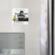 It was a bit smaller than expected, but I was too excited to check dimensions. The product itself send well printed though the grey text is a bit paint. Magnet worked perfectly on my fridge.