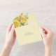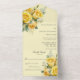 Planning your dream wedding starts with the perfect invitation. Our All-in-One wedding invitation is designed to capture the romance and elegance of your special day. Featuring bouquets of delicate yellow roses entwined with baby's breath, this invitation sets the tone for a celebration filled with love and joy. The All-in-One wedding invitations are both beautiful and practical by combining the wedding invitation with an easy to remove perforated RSVP postcard. They are also quick and easy to prepare for mailing. Simply address the invitation, fold the back flap and seal with the included clear stickers. Once your guests receive the pre-addressed invitation they simply tear off the perforated RSVP card and drop it in the mail.
