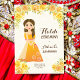 Yellow roses flowers with cute Indian girl Haldi Invitation with Ganesha.