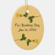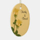 This design features yellow roses. This beautiful ornament is a keepsake for the happy couple for years to display. You can customise all the information by editing the text boxes on the front and back.