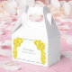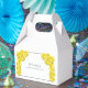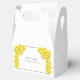 This design features rustic yellow roses. The yellow roses are complimented by an elegant black lined border. The yellow tones of the rose flowers create a rustic floral country garden feel. Elegant wedding favour box design with modern elements. Matching wedding invitations and other stationery items are also available.