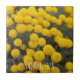 Ceramic tile that features the photo image of round, yellow Santolina flowers, commonly known as Lavender Cotton, an herbal shrub plant. A lovely, floral design! Select your tile size. Makes a great kitchen trivet!