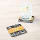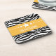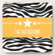 Trendy and modern Sassy Star Zebra Coaster Set featuring a chic black and white zebra print background and a bold yellow border adorned with a fun star motif. This girly design may be customised with the personalised text of your choosing. Click "Customise It" to find more personalisation options.