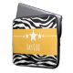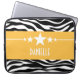 Trendy and modern Sassy Star Zebra Laptop Sleeve featuring a chic black and white zebra print background and a bold yellow border adorned with a fun star motif. This sleeve is perfect for protecting your gadget with style! This girly design may be customised with the personalised text of your choosing. Click "Customise It" to find more personalisation options.