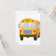An icon of school public transport is the yellow school bus. This design showcases the yellow school bus perfectly. The design is looking at the bus front on. This yellow school bus design looks great on these invitations