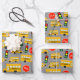 Yellow School Bus Stop Sign Traffic Lights Pattern Wrapping Paper Sheet