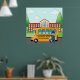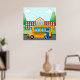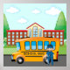 Brighten up any classroom or nursery with this cheerful school bus and friendly driver poster. Featuring a classic yellow school bus parked in front of a colorful elementary building, this high-quality print is perfect for back to school decor or educational settings. The vibrant cartoon style adds a welcoming touch to learning environments, making it an ideal choice for teachers and parents looking to inspire young students.