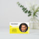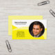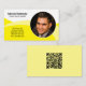 This professional card features an abstract yellow and white background with all text on the front. The back features a matching yellow with a QR code placeholder for you to replace. Use the QR code link to send clients to a website, photos, reviews or other special location. Personalise the text fields, remove text or customise it to select a font style, size, and colour you prefer. Replace the photo with yours. A square photo works best.