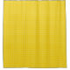 Yellow shower curtain with subtle checkered pattern. Shown flat and in a modern bathroom featuring white fixtures, creating a bright, cheerful atmosphere.