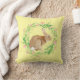 A cute design for spring and the Easter season, this decorative throw pillow features a bunny surrounded by a watercolor floral wreath. The front side has a light yellow background and the reverse side of the pillow has wide yellow and white stripes.