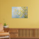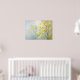 This pretty abstract impressionist artwork features yellow forsythia branches on a soft blue background.