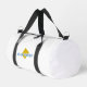 Yellow Square with Beams and Opposite Pixel Text Duffle Bag