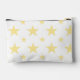 A pretty and feminine yellow stars pouch. This modern, elegant cosmetic bag doubles as a pastel pencil case, perfect as a cute toiletry or back-to-school makeup bag for her, girls, or a constellation-themed accessory.