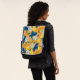 Yellow strawberries on orange backpack
