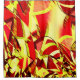 Design of yellowish bands with some dark or greenish tones on a red background and an effect that simulates fine rain.
