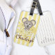 The product design features a baby koala surrounded by flowers. The adorable animal cartoon with yellow stripes makes a cute and unique luggage bag tag with personalised text for diaper bags, school bags, and more!