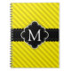 Yellow Stripes Pattern Black Custom Monogram Spiral Notebook
